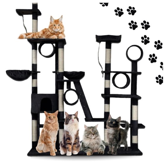 • Rozbudowana Konstrukcja (9 Poziomów): Zapewnia mnóstwo przestrzeni do zabawy i relaksu. Idealny dla kilku kotów, które mogą bawić się i odpoczywać, nie wchodząc sobie w drogę.