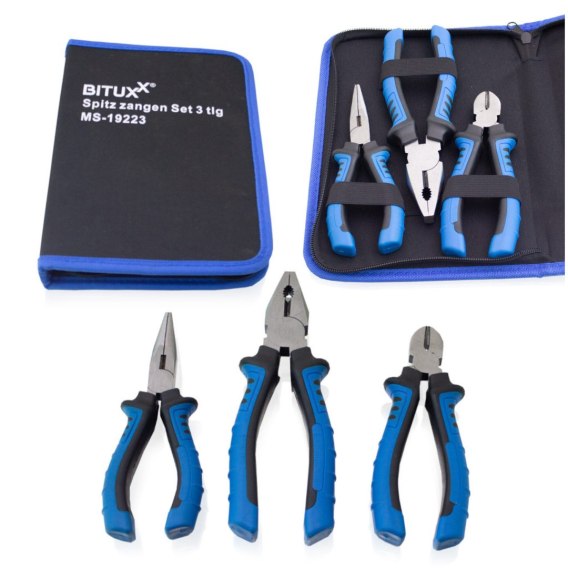 🔧 Zestaw Szczypiec Półokrągłych, Uniwersalnych i Bocznych - Gumowany Uchwyt, Torba w Zestawie 🛠️ Kompletny zestaw szczypiec - półokrągłych, uniwersalnych i bocznych. Gumowane, ergonomiczne uchwyty gwarantują wygodę, a praktyczna torba zapewnia porządek i łatwy dostęp do narzędzi.