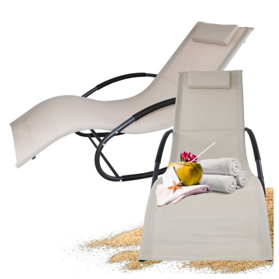 Leżak bujany ogrodowy textilene beżowy do ośrodków spa i hoteli 150 kg