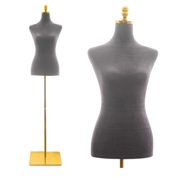 • Manekin krawiecki damski szary welurowy regulowany lekki butik stabilny