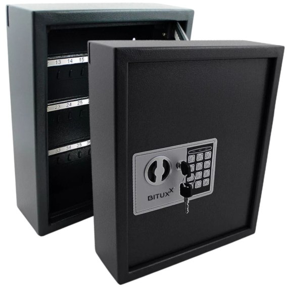 Zabezpiecz swoje klucze z solidnym sejfem wyposażonym w elektroniczny zamek szyfrowy i podwójny system blokowania.