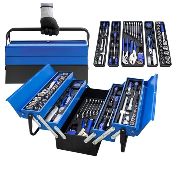 Skrzynka narzędziowa 85el niebieska zestaw warsztatowy trwały organizacja